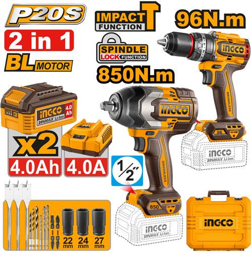 INGCO Cordless Power Tool Combo Kit, Impact Drill Machine & Angle Grinder