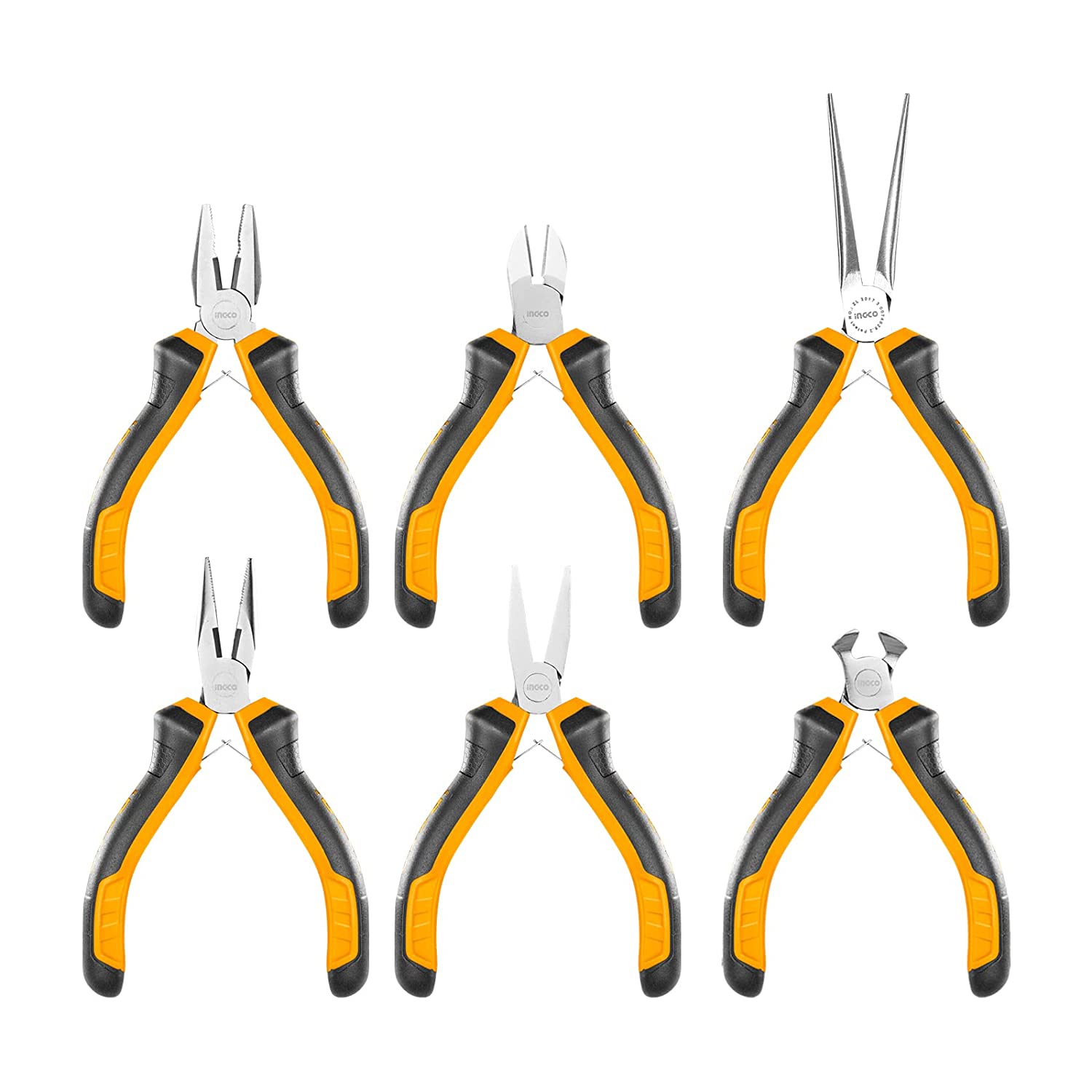 INGCO Mini Pliers Set, 6 PCS/SET, Including Combination Plier, Diagonal Cutting Plier, End Cutting Plier, Long Nose Plier, Flat Nose Plier, Needle Nose Plier